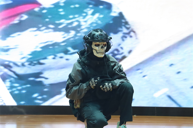 刺耳的警报打破了校园的宁静。教学楼楼梯间浓烟滚滚。各班级按要求从不同楼层撤出,前往指定地点完成疏散。“掩住口鼻、弯腰前行、注意脚下、有序小跑”,一句句坚定有力的口令指导着学生,在教师与教官的引导下,同学们捂住口鼻,有序而快速地撤出楼道。