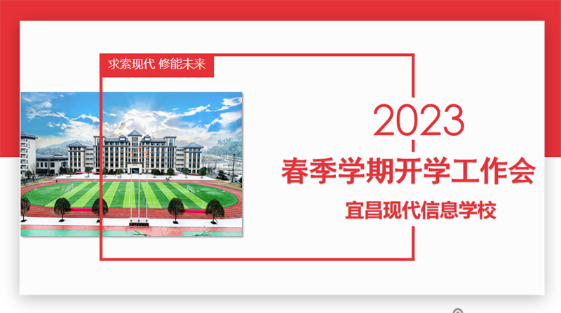玉兔欢跃迎春来,百尺竿头又一春。宜昌市现代信息学校2023年春季学期开学典礼在全体师生翘首以盼的目光中如期而至,现代教育集团董事长田水荣、副董事长朱宗桥、校长李朝晖、副校长肖飞、事业发展部部长吴可、副部长刘春红及学校各处室负责同志在主席台就坐。