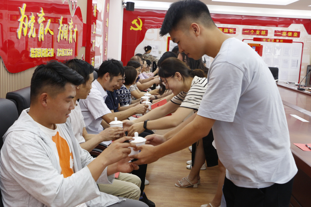 徒弟老师向师傅老师投递拜师贴,立下誓言,行拜师礼,并敬上拜师茶,以表诚意。在这一俯一仰一送一迎之间,接过的是一份沉甸甸的责任,凝聚的是尊师重道的佳风,坚守的是全体教师对教育事业薪火相传的信念。