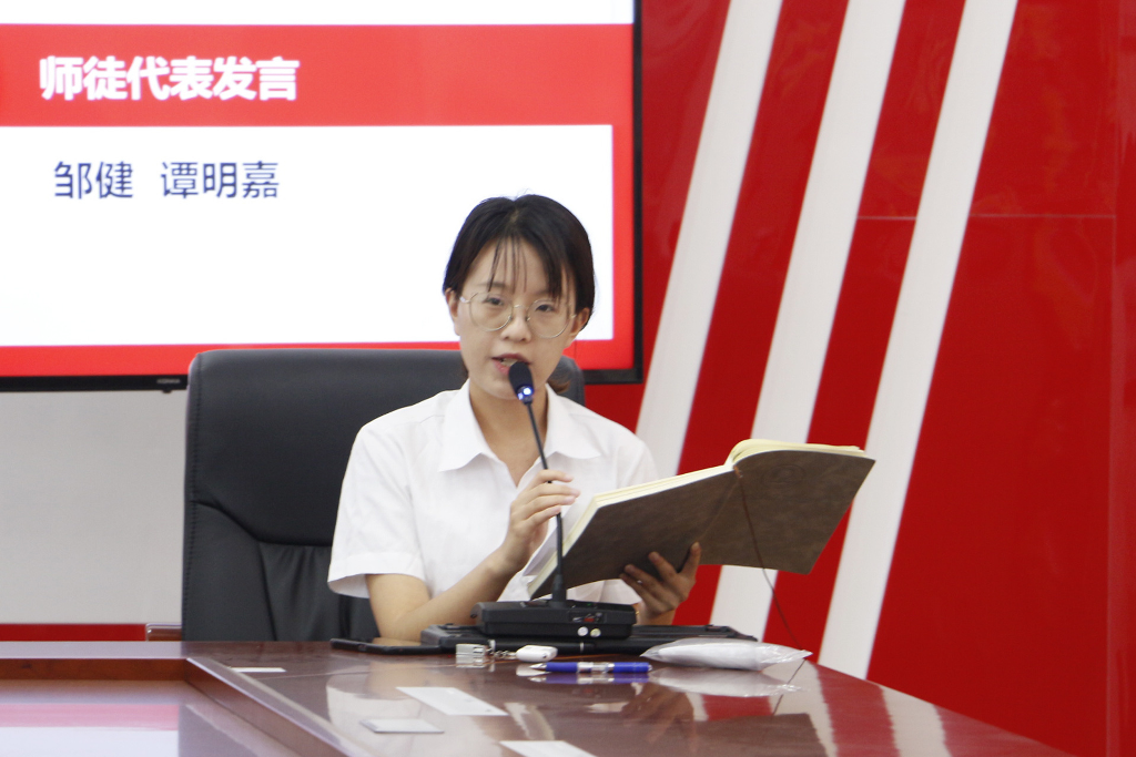 教师发展处主任高瑛宣读师徒结对名单及“青蓝工程”方案,明确师徒职责。