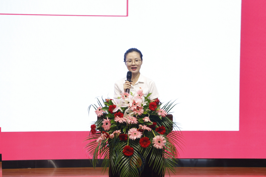 党办主任谢蒙蒙以“建功新时代,奋进新征程,做高素质创新型职教人”为主题,从党建引领、修好内功、奋发有为、共创新功四点展开汇报,通过华坪女高校长张桂梅“苦字当头”的办学故事激励老师们向党员看齐,以党员标准要求自己。强化精神引领,强调笃行实干。