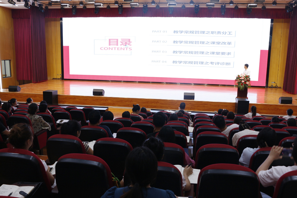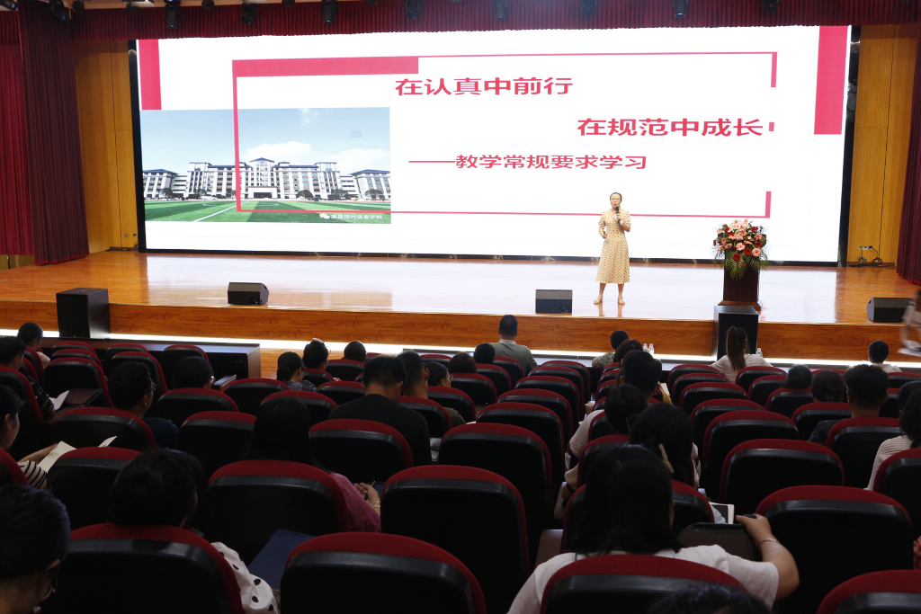 教师发展处主任高瑛以“在认真中前行,在规范中成长”为主题,就七大教学常规中的“备”“教”“研”三点详细阐述了新学期牢抓教学质量、练好教师基本功的具体要求和措施,赋能教师专业发展。