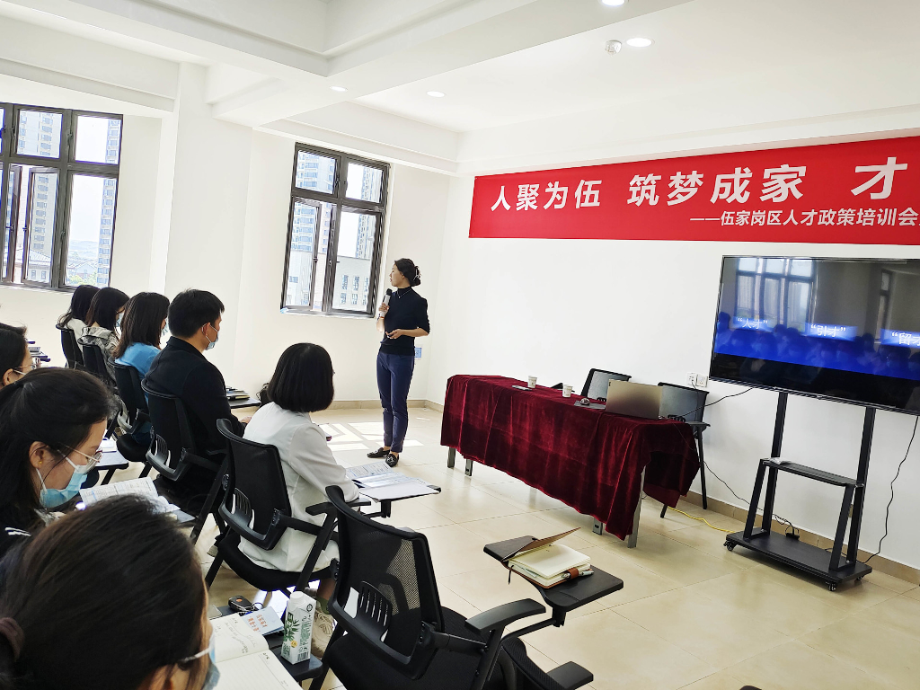 伍家岗区委组织部人才办副主任李红霞从政策背景、政策干货、政策实操三个维度认真讲解了宜昌市“1+4人才政策”,着重介绍了“伍家英才”计划。结合我校实际情况,李主任从“青年驿站住宿”“生活补贴”“租房补贴”“购房补贴”和“公积金贷款额度”五个方面向师生进行了细致介绍,诚挚邀请我校广大师生选择伍家,享受地方政策,实现政府礼敬人才和才引未来的双赢局面。