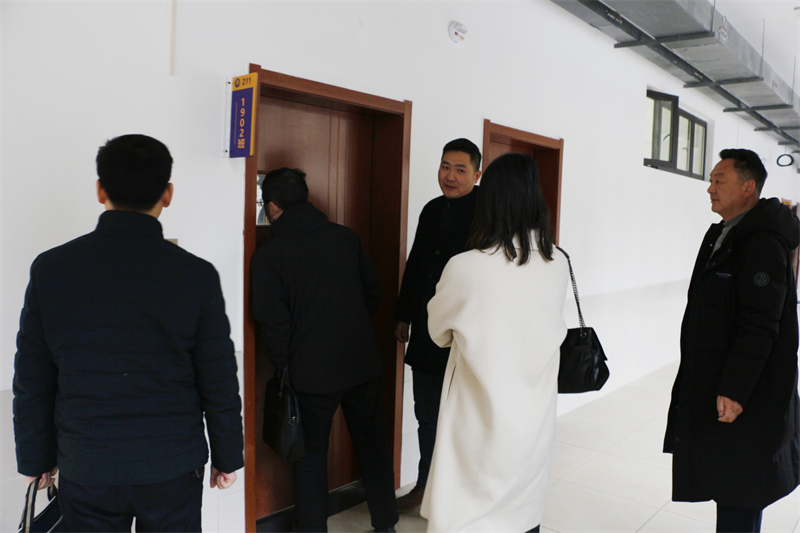 各位领导首先参观了教室、实训室、寝室、食堂、操场和校园周边环境,并观摩了学生课间操。