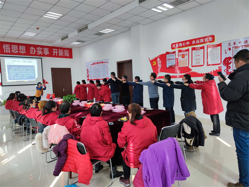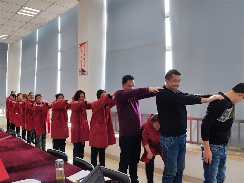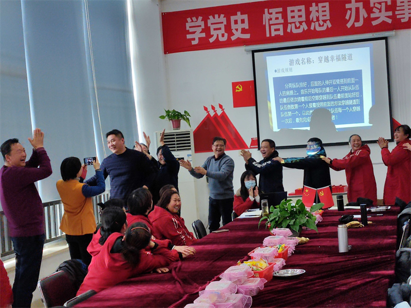 外面虽是寒风凛冽,会场却是春意融融,会场充满着欢声笑语。为了让参会人员度过一个欢快难忘的总结会,会议开始之前,由李校长和肖校长带队与食堂工作人员共同完成一项团队竞争游戏——穿越幸福隧道,优胜队可要求输了的队伍表演节目。在激烈的竞争中,肖校长所带领的队伍获得了胜利,段主任及食堂采购工作人员自发奋勇表演节目,一起演唱了歌曲《我的好兄弟》,获得了全体人员的热烈掌声,将会场气氛推向高潮!