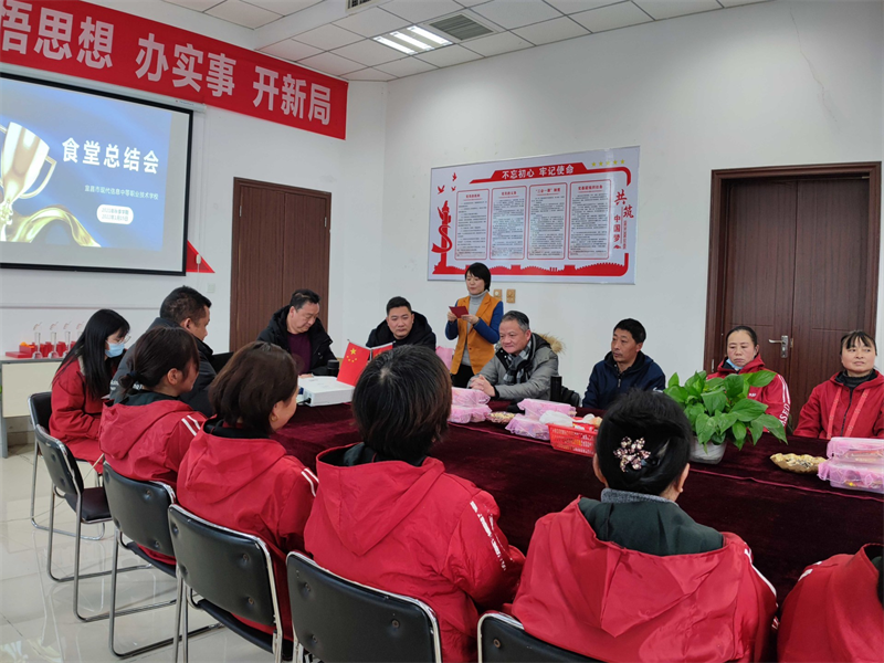 食堂是学校的窗口,是稳步推进学校各项工作展开的坚实基础。2022年1月15日下午,我校召开了2021——2022学年度学期食堂工作总结会议,执行校长李朝晖、副校长肖飞、后勤主任段超及全体食堂工作人员参加了本次会议。