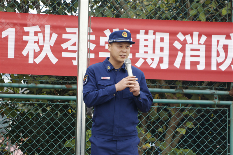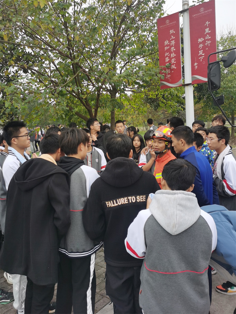 演练结束后,消防大队陈教官对本次消防演练做了全面点评与总结,对全体师生沉着冷静、听从指挥、保护到位、有序撤离的表现给予了赞扬,并进一步强调了逃生、遭遇火灾时应注意的问题。
