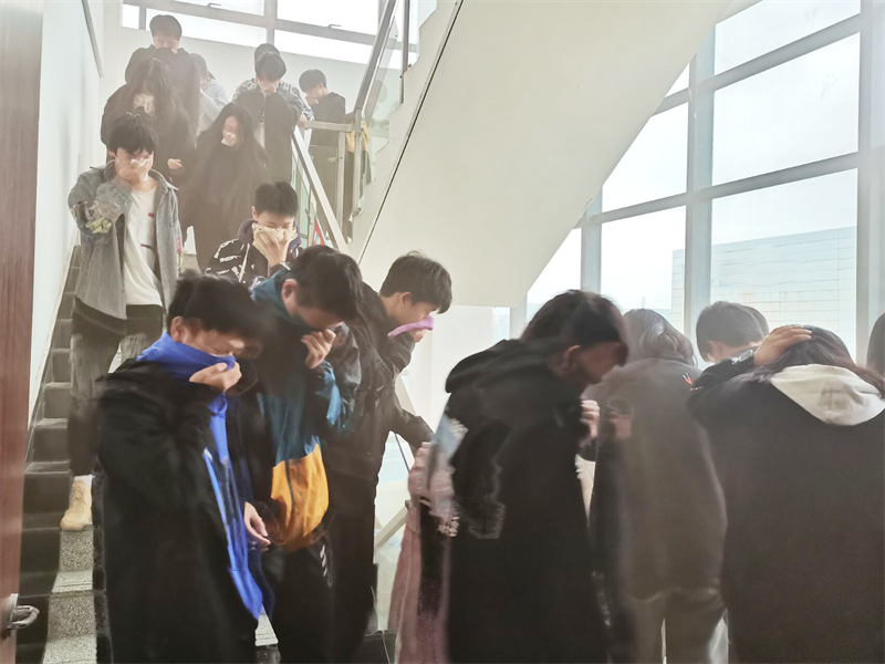 下午3点,警报声响彻校园,全体师生遵守“捂住口鼻,弯腰前行、有序小跑”的原则,从容不迫、有条不紊地进行了疏散撤离,整个演练过程既紧张又有序。各班主任在集合地点及时清点人数,层层上报,全校师生全部安全疏散完毕。