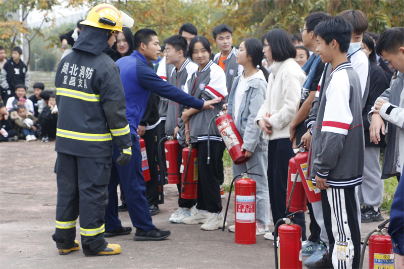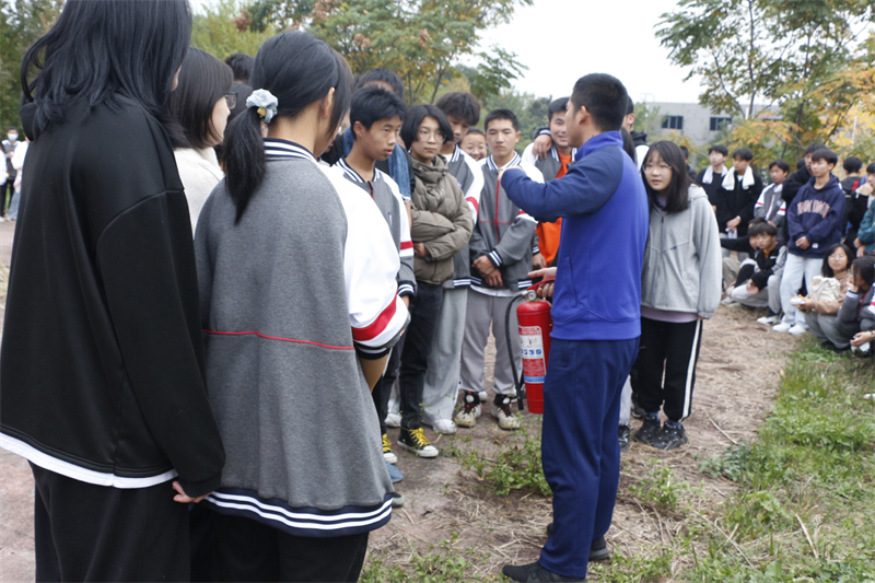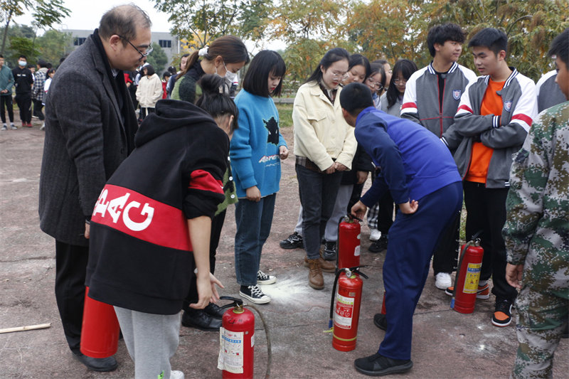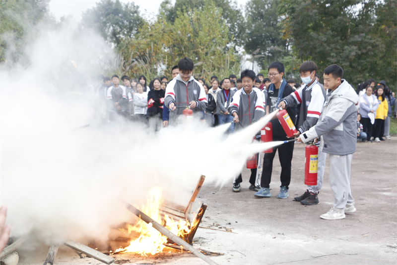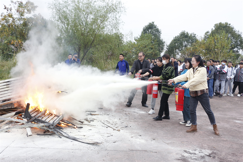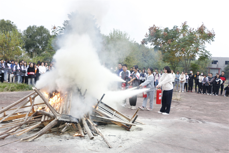 随后,为将理论知识运用到实践生活中,各班级分批进行实操,确保所有学生真正掌握灭火设备使用。