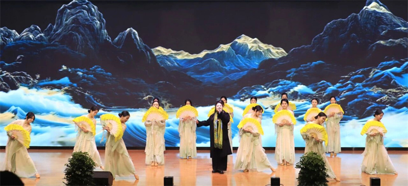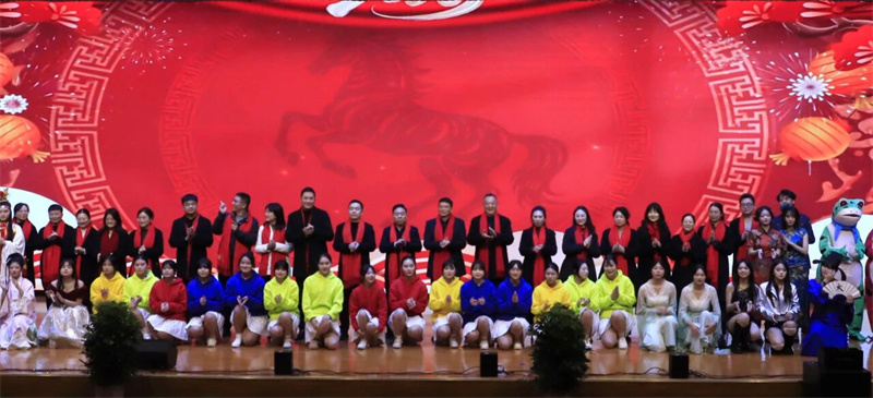 最后,歌伴舞《相亲相爱一家人》温情上演,演员代表与领导同台互动,传递出校园里的浓浓温情。
