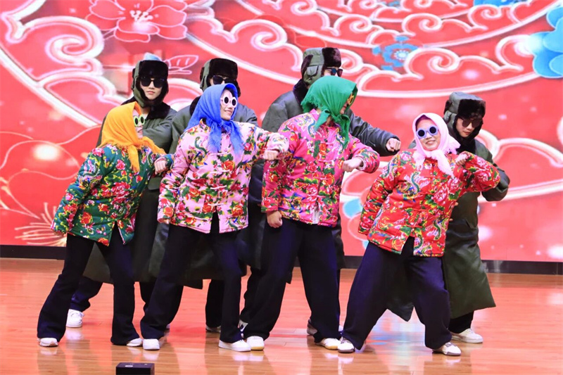 教师代表与2410班携手带来的舞蹈《大花轿》喜庆热闹,瞬间点燃现场气氛。