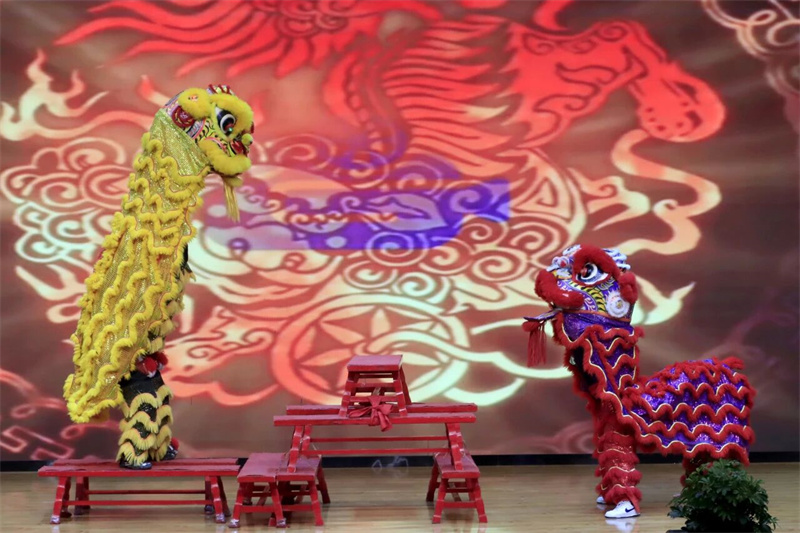 2417班与2418班的舞狮表演《踩凳》气势恢宏,尽显传统文化魅力。