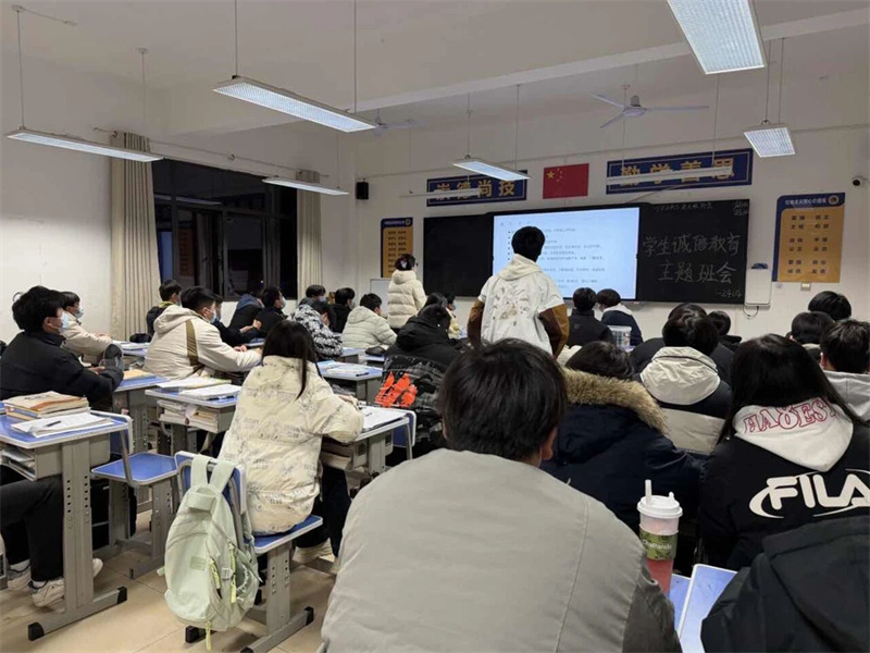 考风正则学风浓,学风浓则校风正。各班级在每次大考前组织学生集中签署《诚信考试承诺书》,承诺书上清晰列明了考试违纪作弊的具体情形与相应后果。同学们逐字逐句阅读承诺书内容,深刻认识到考试诚信的重要性,随后郑重地在落款处写下自己的姓名。一纸承诺,不仅是对学校考纪的遵守,更是对自身品德的坚守。通过签署承诺书,同学们从思想上筑牢了诚信考试的防线,主动摒弃侥幸心理,树立起“以诚信为荣,以作弊为耻”的价值观。