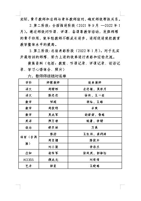 教务谢华军主任针对“青蓝工程”师徒结对方案做了介绍,要充分发挥骨干教师和名师作用,促进青年教师迅速成长,促进我校教育教学整体水平的提高,实现教学相长,实现“双赢”。公示骨干教师和青年教师“青蓝工程”结对分配名单。