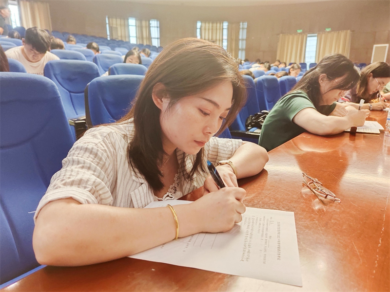 五天培训即将结束,按照“有学习才有提升,有培训必有考核”的原则,学校组织了集体考核,教师就党史学习、职教政策方针、文明典范创建、教育教学理论、学校制度落实等内容进行书面答题,督促教师养成良好的学习习惯,提升教师的政治站位和业务素养,倒逼提高培训工作效度,落实学习型教师队伍建设,为建设一所有内涵有特色的中职学校而奋斗。