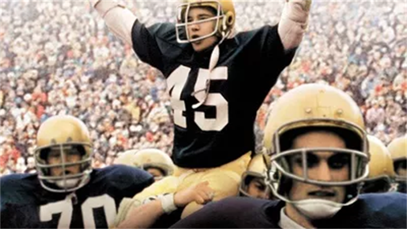 《追梦赤子心》被认为是美国励志片的典范之作,这是一部改编自丹尼尔· 鲁迪真人真事的励志电影,讲述了身材瘦小的鲁迪通过不懈努力,进入梦想中的圣母大学橄榄球队,并终由替补变为正选队员的故事 。男主人公鲁迪传达了“只要努力,就能获得成功”的奋进精神。