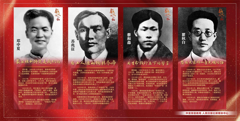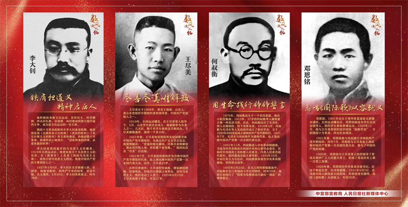 为隆重庆祝中国共产党成立100周年,中宣部宣教局会同人民日报社新媒体中心制作了10幅“七一”宣传海报,宣传展示李大钊、彭湃、方志敏等优秀共产党员的光辉形象和感人事迹。