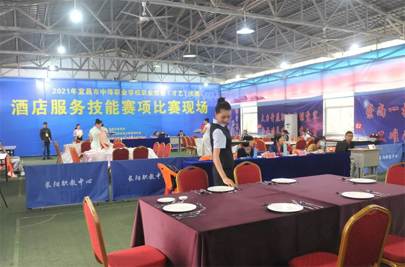 清江美如画,画廊在长阳,5月20日下午2021年宜昌市中等职业学校学生技能(才艺)大赛在长阳职教中心开幕。宜昌市教育局四级调研员石希峰,宜昌市教育局职业与成人教育科科长杨晓艳,宜昌市职业技术教育研究室主任周欣,首场赛事承办校校长杨奎与来自全市11所中职学校近百位师生共同见证了今年技能大赛开启的重要时刻。