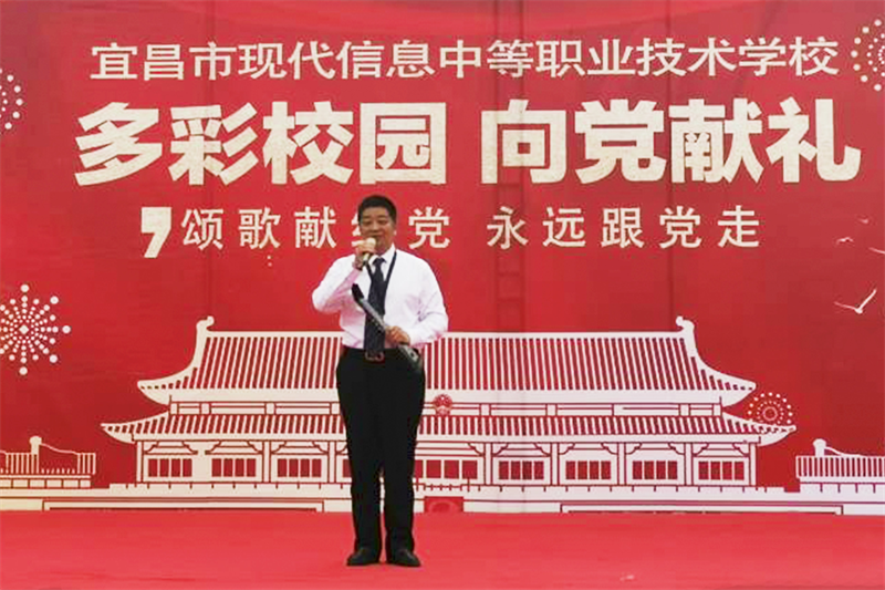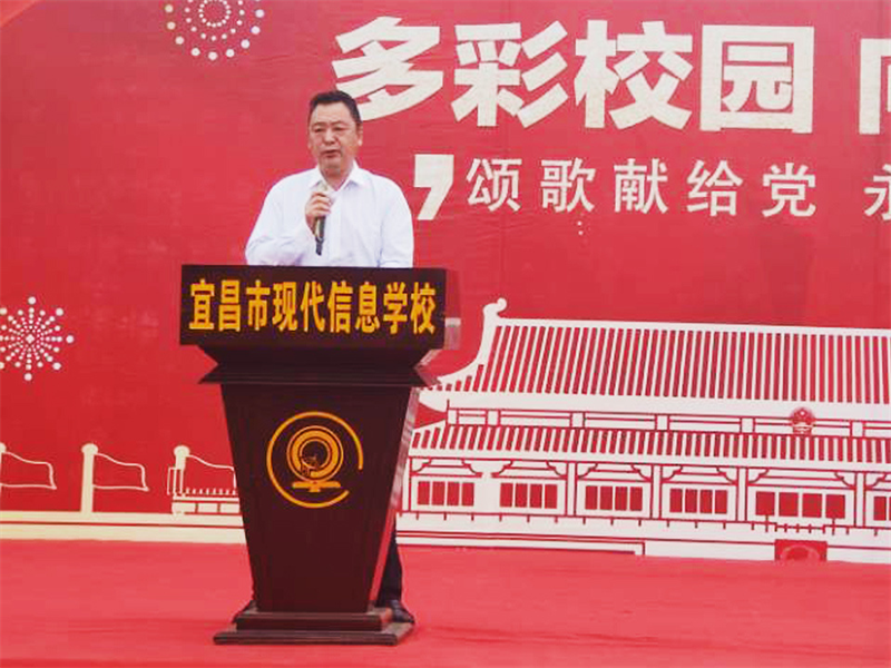 校长朱宗桥开场致辞,要求同学们要弘扬"五四精神",肩负起时代赋予的光荣使命,共同谱写新的辉煌。
