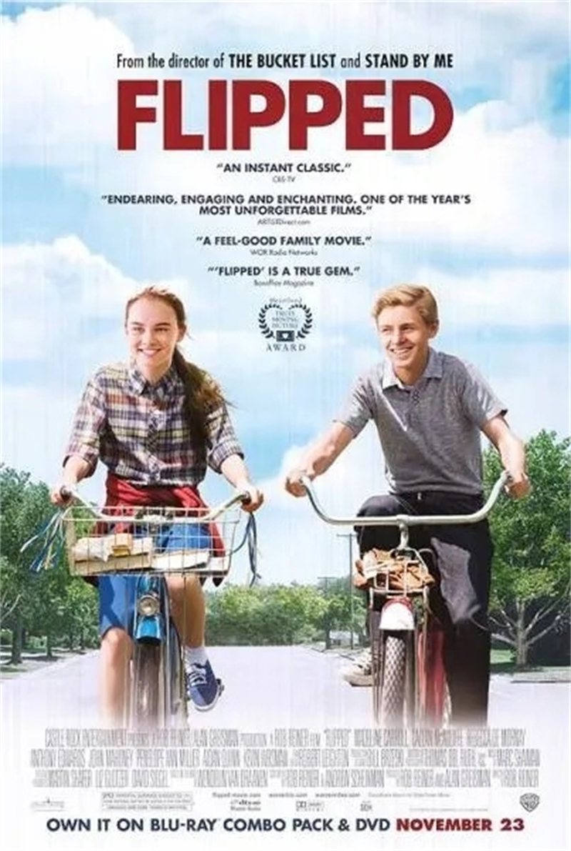 《怦然心动》该片根据文德琳·范·德拉安南的同名原著小说改编,描述了青春期中男孩女孩之间的有趣战争。