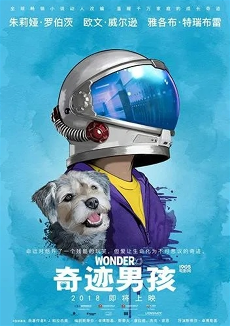 《奇迹男孩》影片根据同名小说而改编,讲述了10 岁的奥古斯特天生脸部畸形,此前一直在家中和妈妈自学。次上公共学校的故事。