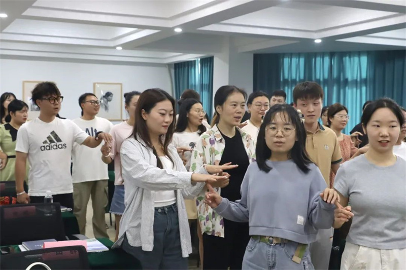 开班仪式由学校办公室副主任刘倩影主持,通过“抓手指、泡泡糖、手口不一”等小游戏,新教师间的距离迅速拉近,以游戏的形式“破冰”,在欢笑之余,我们凝聚了团队力量。