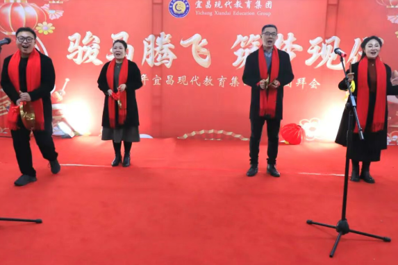 现代教育集团董事长、党支部书记田水荣发表新春致辞,并代表董事会为全体教职工送上新春福利,传递温暖与关怀。田书记充分肯定过去一年全体教职工用智慧与汗水书写奋斗华章,以担当与奉献诠释育人初心,并展望马年新征程,号召大家以龙马精神直面新挑战、策马扬鞭再出发,以骏马奔腾之势、一马当先之姿,持续提升办学效能,奋力构建富有生机的职业教育发展线。