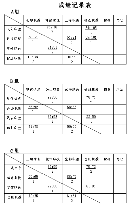十二支队伍,六场比赛,经过激烈角逐,比分如下: