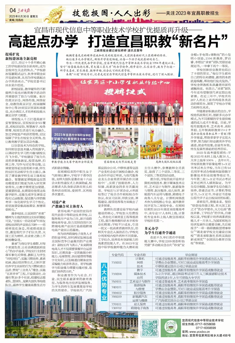 2024年,我校以此次获奖为契机,继续踔厉奋发,扎实办学,为新一年度的宣传提供坚实的基础。学校荣获“中国十佳特色示范学校”称号;荣获宜昌市清廉学校建设示范校荣誉;学生在全国职业技能大赛选拔赛上突围而出杀入国赛;在新能源汽车赛项获得省赛三等奖;在宜昌市中职学生技能大赛上获得美术赛项一等奖、舞蹈团体二等奖、模特二等奖等诸多奖项。教师在宜昌市首届阅读节斩获得二等奖,在即将举行的教师技能大赛前积极备赛……正是我校师生的不懈努力、奋楫前行,才使得学校在宣传工作中稳步推进。
