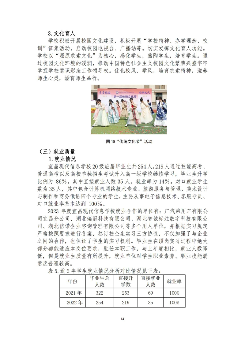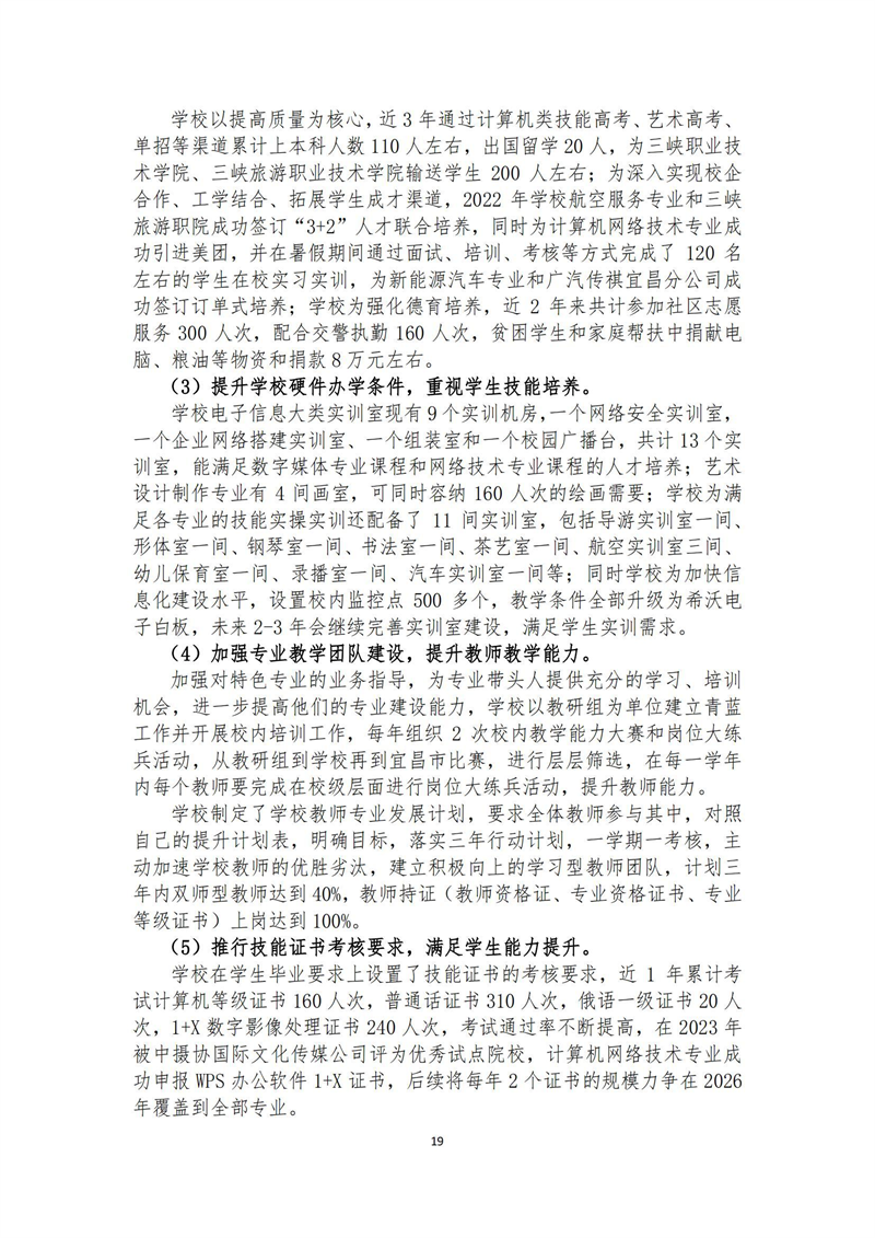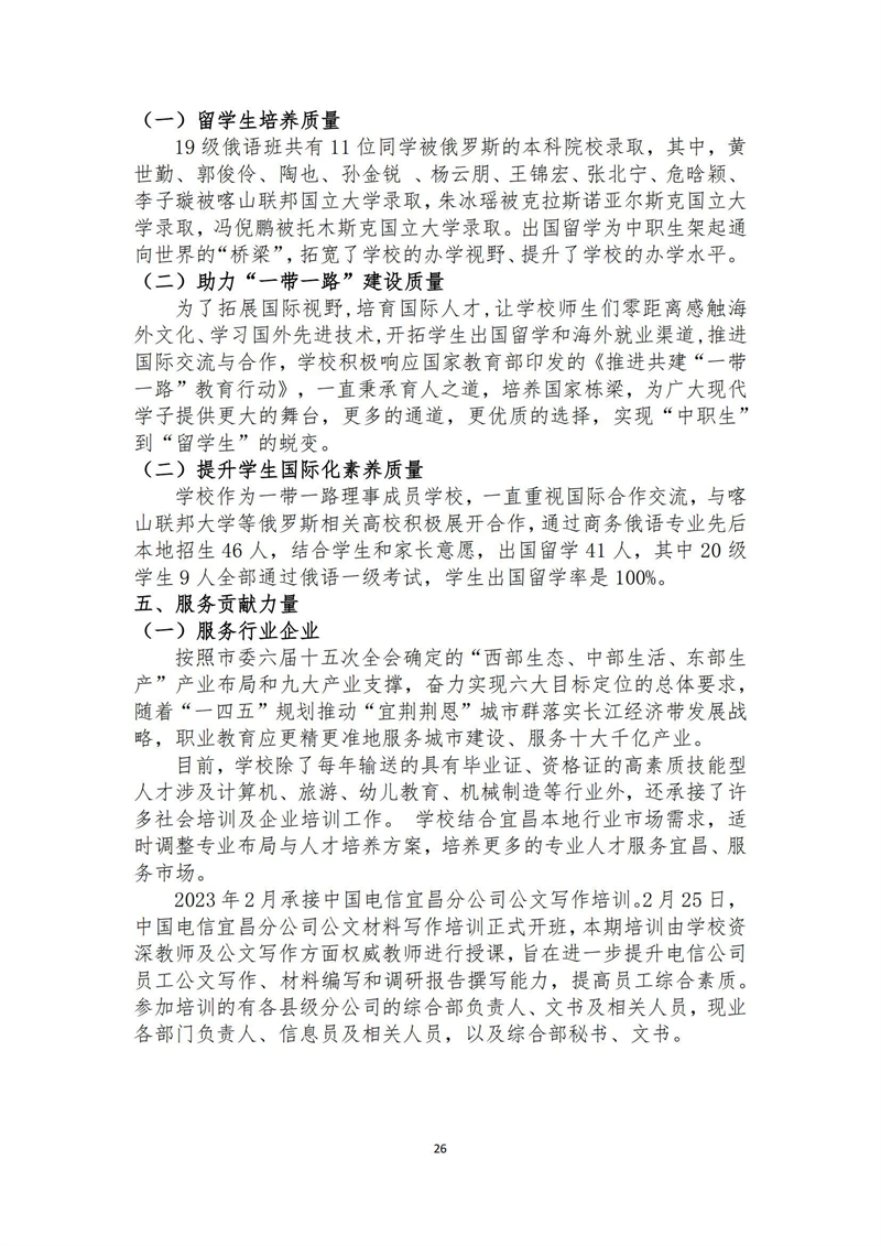 2023年宜昌现代信息学校质量年报