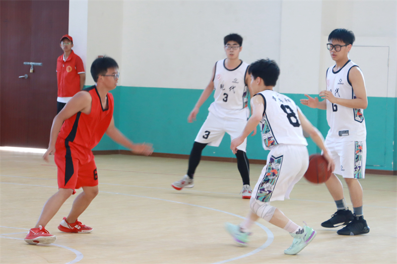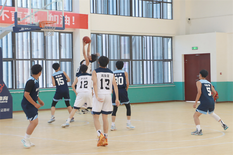八强之争,燃爆全场赛场上球员奋力一跃为争夺球权拼尽全力敢拼敢抢,配合默契严防死守,顶住压力全情投入到争夺战中