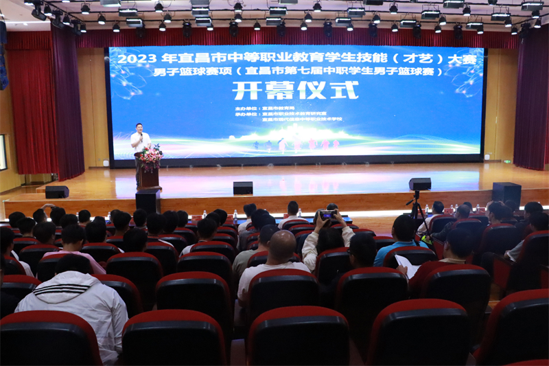 在充满生机与活力的初夏之际,2023年宜昌市中等职业学校学生技能(才艺)大赛这一展现中职生技能才艺风采的年度盛会即将精彩呈现,做为宜昌市中职学校参赛人数多、赛程长的男子篮球赛项暨宜昌市第七届中职学生男子篮球赛于5月15日上午拉开竞赛的帷幕,宜昌市域13支精神焕发、朝气蓬勃的队伍齐聚宜昌市现代信息中等职业技术学校,将在六天的时间里展开激烈角逐,共同缔造增加了解、增进友谊、加强团结、促进发展、公平公正的体育盛会。学校党支部书记田水荣致开幕词,宜昌市教育局职教研究室主任周欣出席开幕式讲话并宣布比赛开幕,13所中职学校领队、裁判员、教练员、运动员与会。