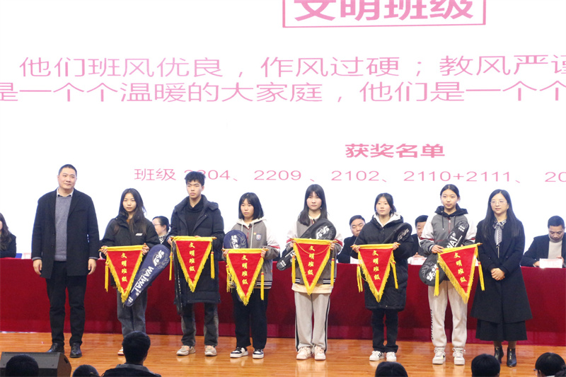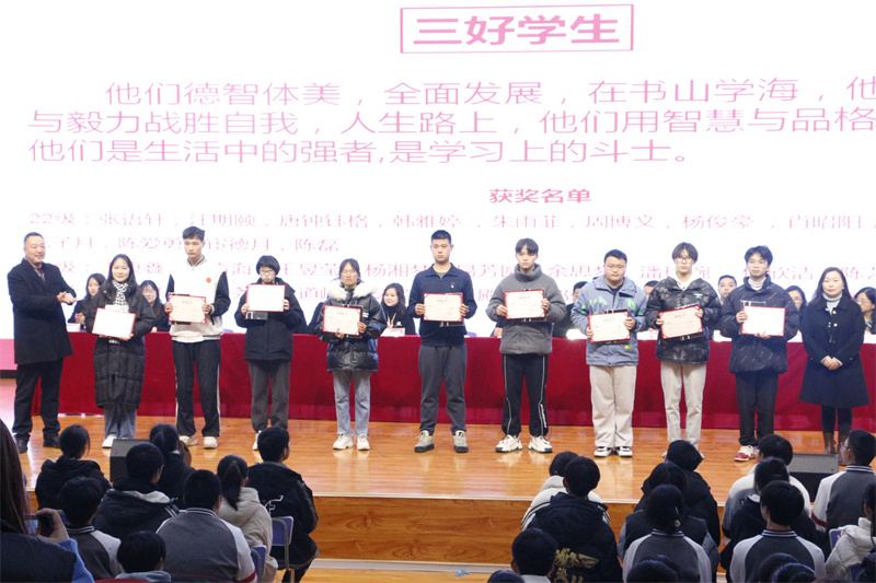 作为学生在学校这个大家庭中的贴心家长、知心朋友,姚文俊老师代表全体班主任老师对同学们提出了“不沉迷手机,珍惜当下,常怀三心,争做立德、立言、立功之人”这四点希望。幽默诙谐的话语化解了大道理的枯燥,获得了同学们的掌声,令大家欣然认可。