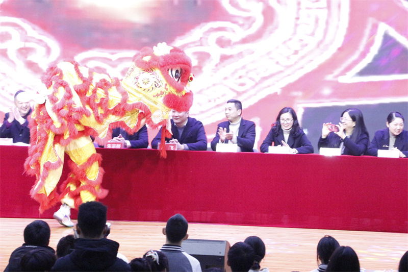 颁奖仪式前后,在这欢聚一堂、喜迎开学的美好时刻,还为全体师生准备了精彩的表演。学校舞狮队为大家呈上节目,猛狮舞动,擂鼓阵阵,眨眼弄嘴,摇头摆尾,两只神气活现的狮子围绕着全场老师、同学送彩头、送祝福。