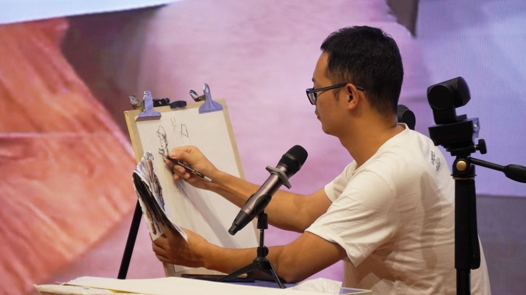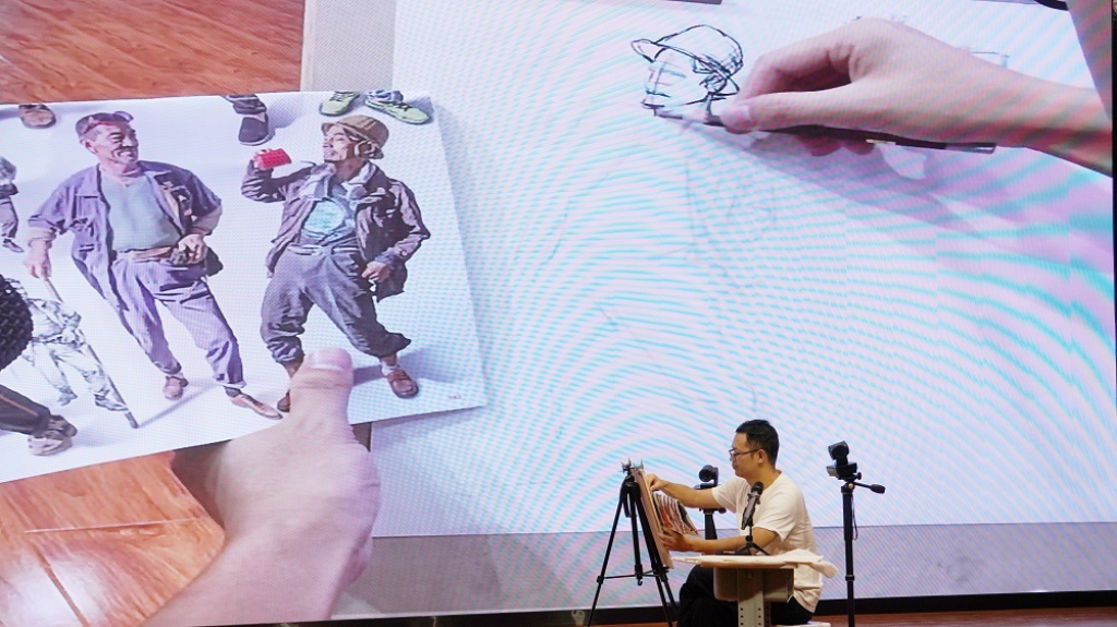 屈鹏老师就同学们提出的问题答疑解惑,让同学们对线性速写与线面速写的区别、初学节奏感如何把握、如何让画面富有张力、如何让人物五官的神态生动形象等问题有了更加清晰的认知。
