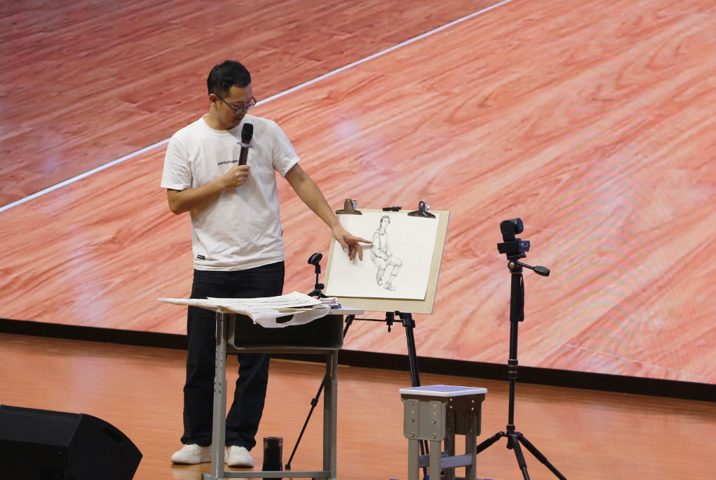 9月13日晚上,知名美术速写专家屈鹏老师来我校学术报告厅现场范画、现场教学、现场互动。本次活动以帮助孩子提升专业审美和专业能力为主旨,通过打造一支高质量、有理想、有情怀的教学团队,为孩子们的艺考之路保驾护航,同时也引导孩子们在一笔一画中书写自己的精彩人生。