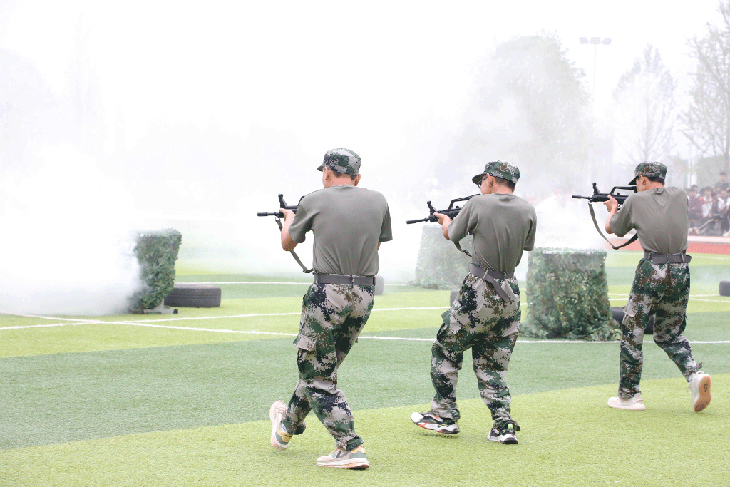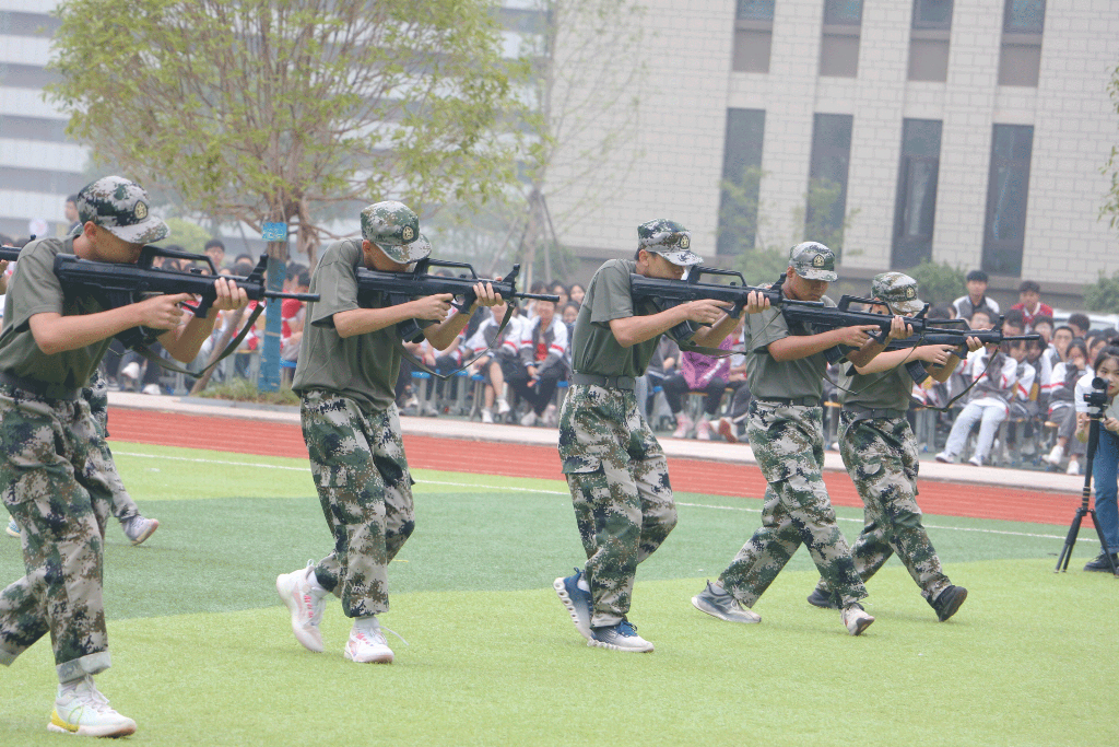 9月1日上午,我校在操场举行了2022级学生军训会操展示活动,宜昌市人武部长左立峰、军事科长王银先特邀出席,现代教育集团董事长田水荣、集团副董事长朱宗桥、集团总经理胡一杰、校长李朝晖、副校长肖飞参加军训结营仪式。