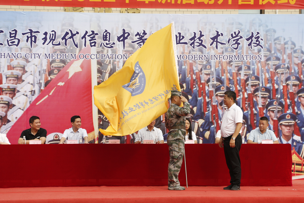 执行校长李朝晖对新同学的到来表达了热烈的欢迎与美好的祝愿。步入现代信息学校的校门,同学们步入人生的新轨道。希望每位同学都能在心中树立一把戒尺,克己慎独,守心明性,以实际行动彰显我校学子的风采!并提出“确保健康安全;认真领会军训意义;刻苦训练,学习军人作风;凝聚集体,争当模范;艰苦训练,力争高标准、高质量完成军训任务”五点要求。