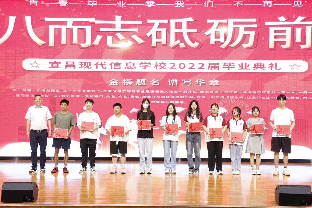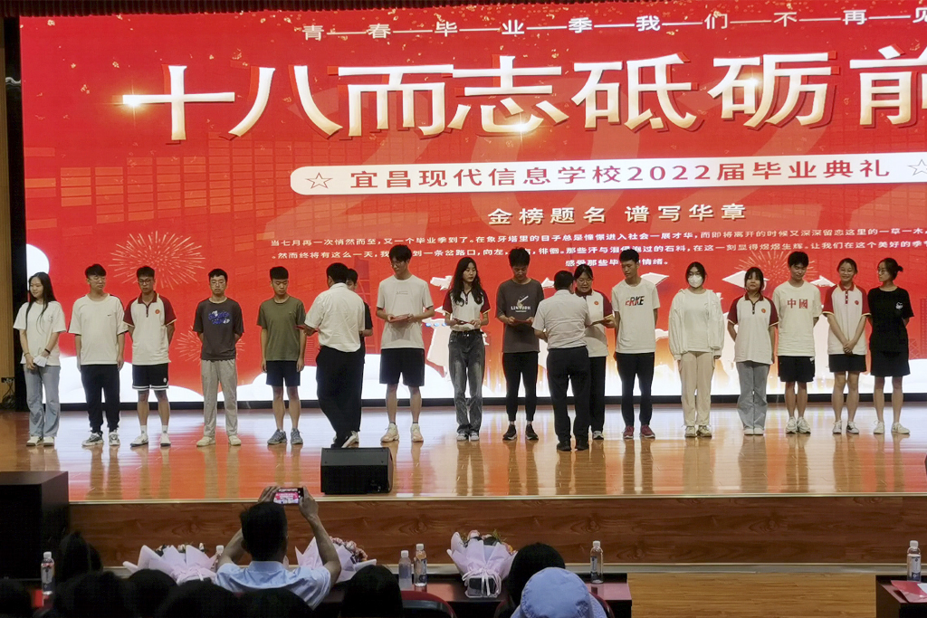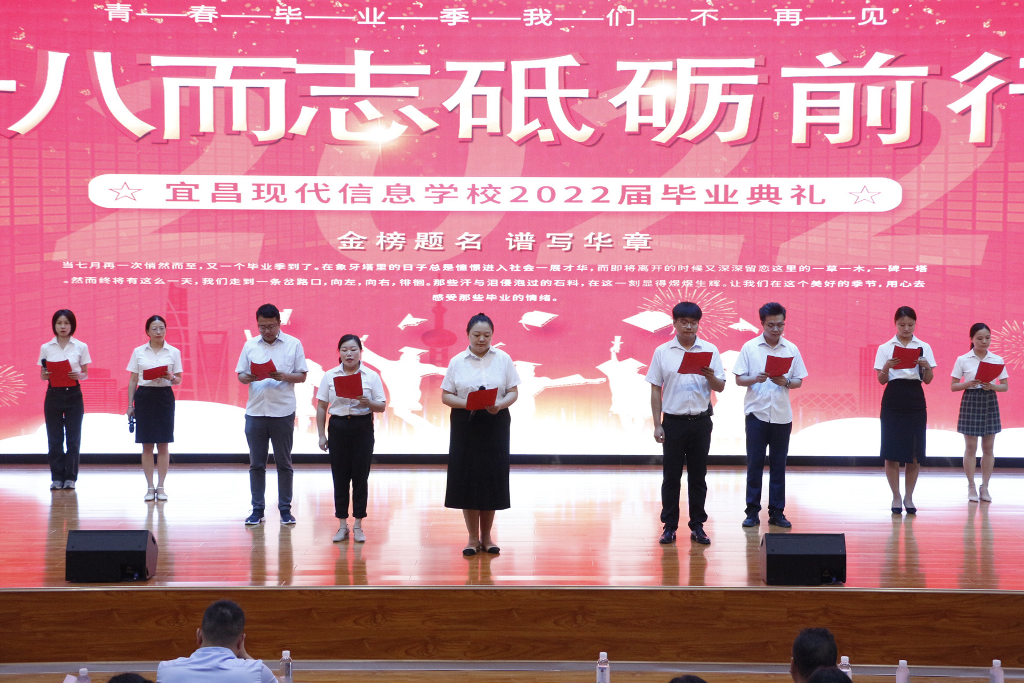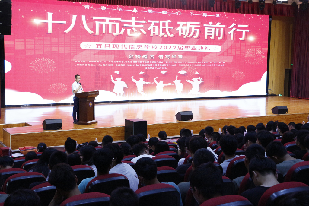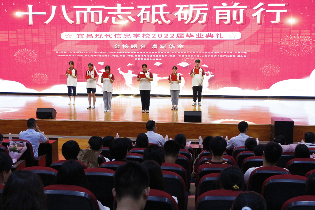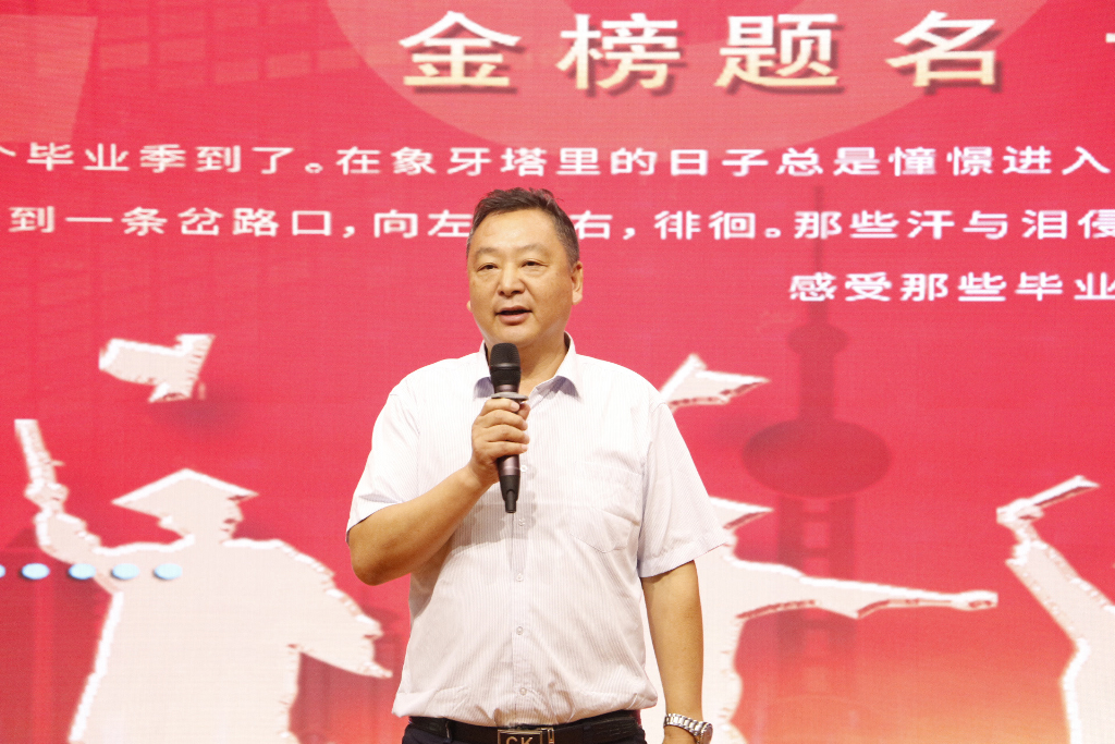 副校长肖飞宣读优秀毕业生名单,十年树木,十载风,十载烈阳,十载雨,苦读多年,方为栋梁,希望学子们在今后的成长和工作岗位上继续发扬求真务实、追求卓越的精神。