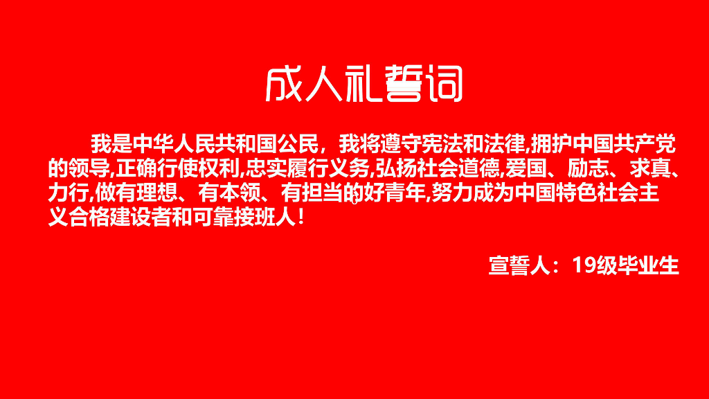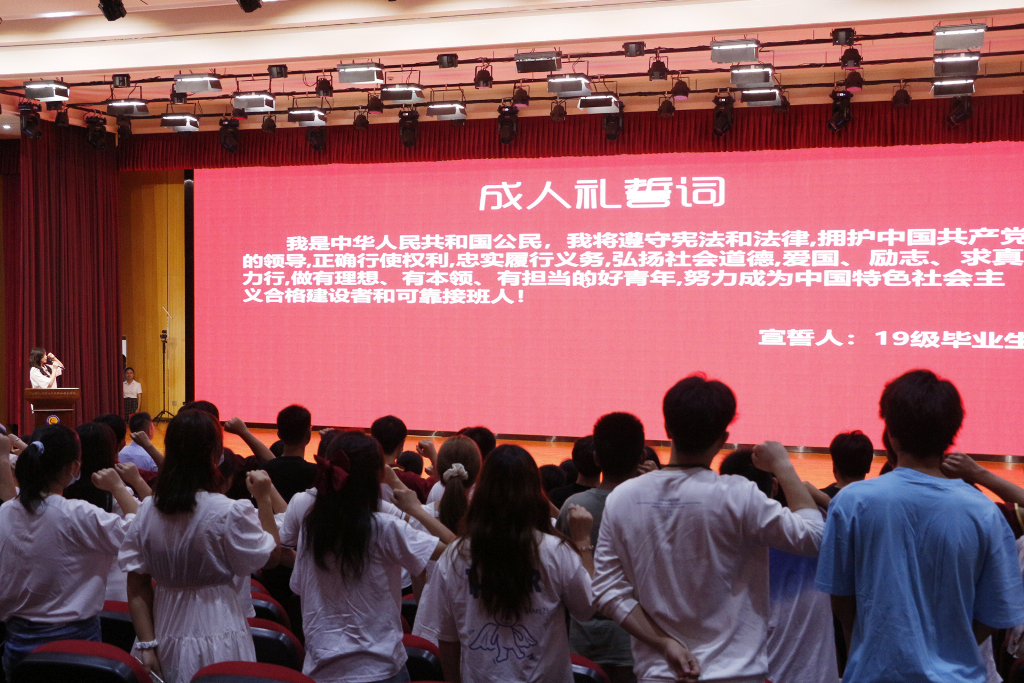 在这神圣的时刻,你们热情吟咏,你们庄严宣誓。珍藏这份恰同学少年的情谊,珍惜这段同舟共济的人生。成人礼,不是告别过去,而是向未来承诺担当,对自己、对家庭、对社会。就像向华主任说的那样:认识上做到明责、知责,行动上做到履责、尽责,落实上做到负责、担责;明确自身责任和义务,崇尚法治,敬畏法律,自觉维护宪法权威。