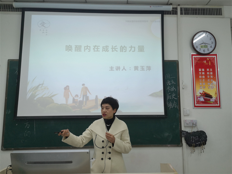 12月7日上午,人生规划师、“爱.自然.生命力”亲子导师黄玉萍受邀为我校2104班、2103班带来了两场《唤醒内在成长的秘密》的心理赋能课。