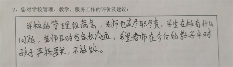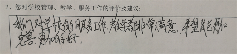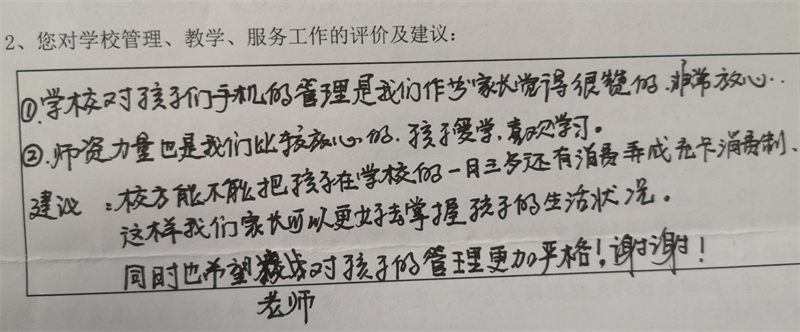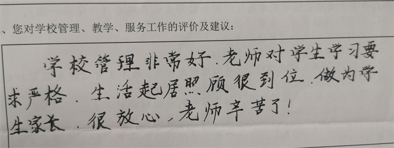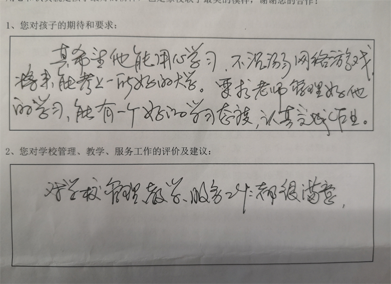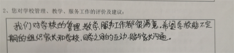 学生返校后,学校认真倾听了家长们的“隔空喊话”,被家长的热情和真诚感动。家长们对学校的工作给予了充分地肯定,对学校的满意率非常高,无悔当初的选择,认定现代信息学校是一个让家长放心的地方,同时,家长们也提出了很多建设性的意见,表达了对搬进新校区的迫切愿望,对多跟老师交流沟通的内心诉求,对孩子未来发展的殷切期待。
