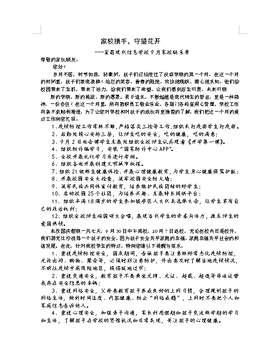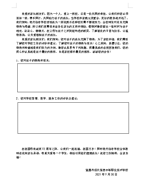 国庆小长假之后,宜昌现代信息学校收到了来自全校一千多名家长的热情反馈和真诚建议。