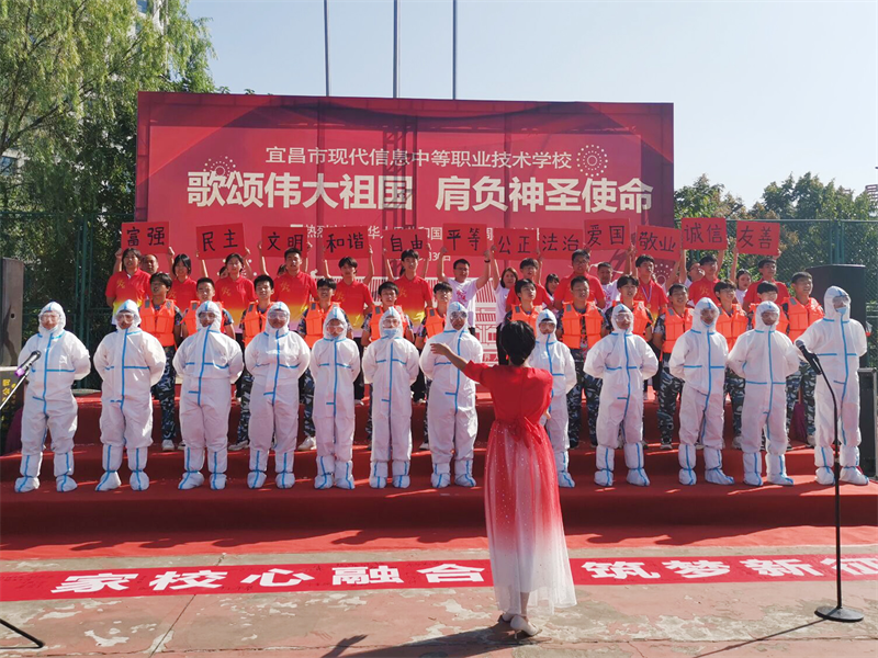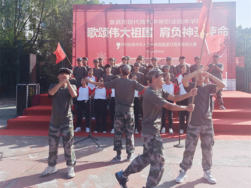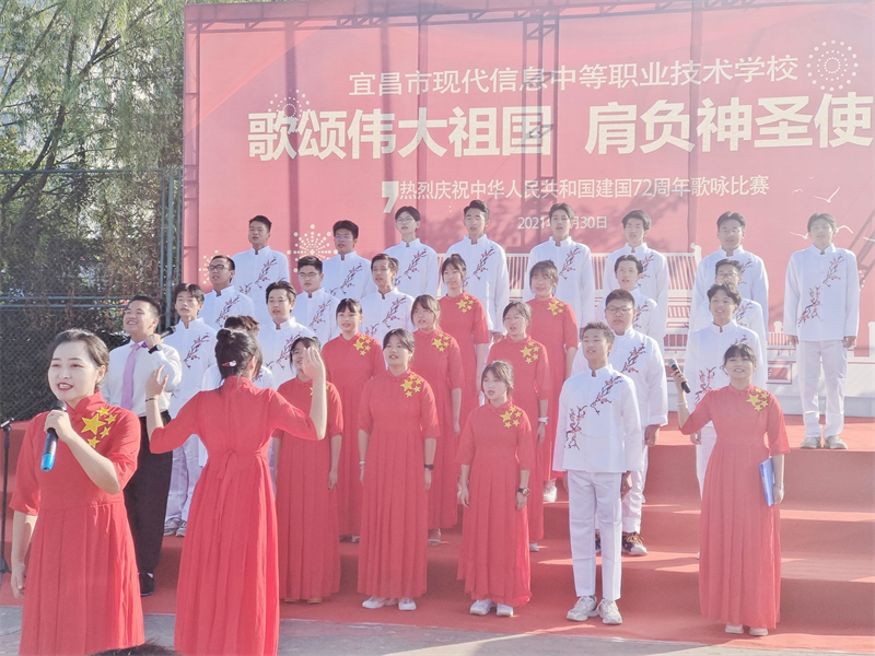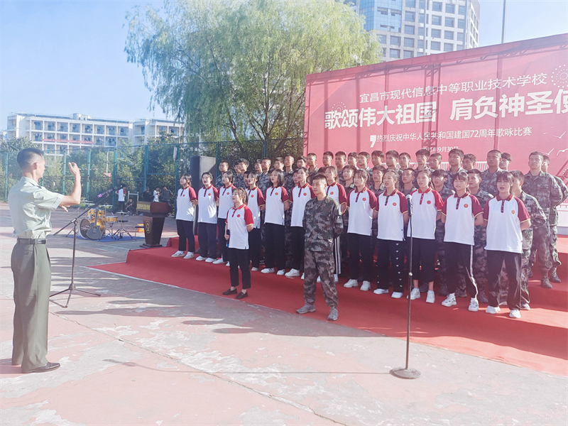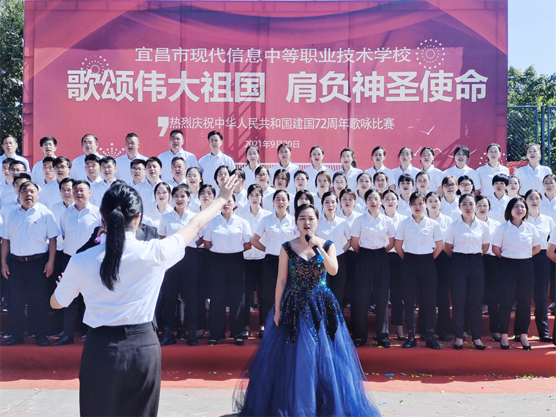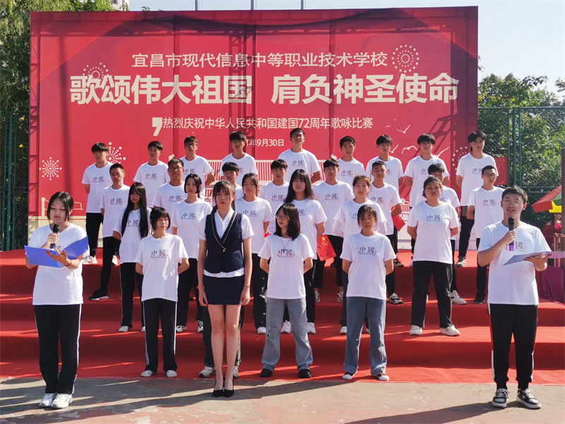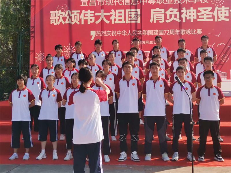 为庆祝中华人民共和国成立72周年,重温历史的脉动,感召莘莘学子肩负起青少年的使命,增强集体凝聚力,展现青春昂扬的战斗姿态,由现代信息学校团委主办的“歌颂伟大祖国、肩负神圣使命”为主题的祖国颂大合唱比赛,于9月30日上午八点在学校操场拉开帷幕。校党支部书记田水荣、校长朱宗桥、校长胡一杰、执行校长李朝晖、副校长肖飞等领导出席参加并担任本次大合唱评委。