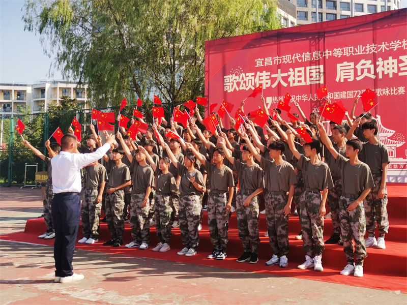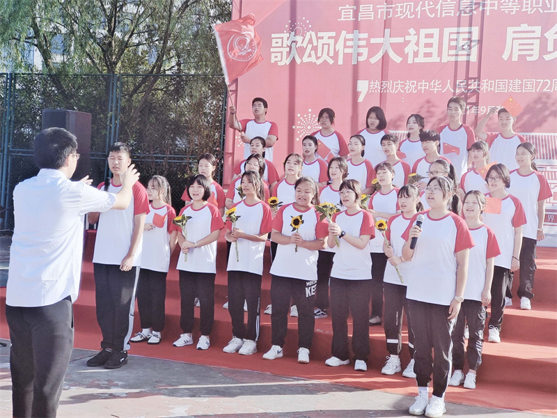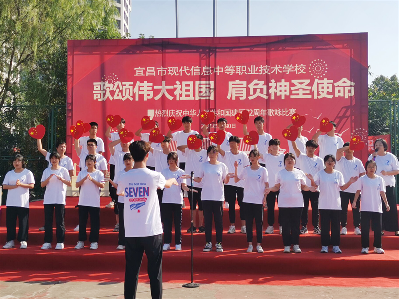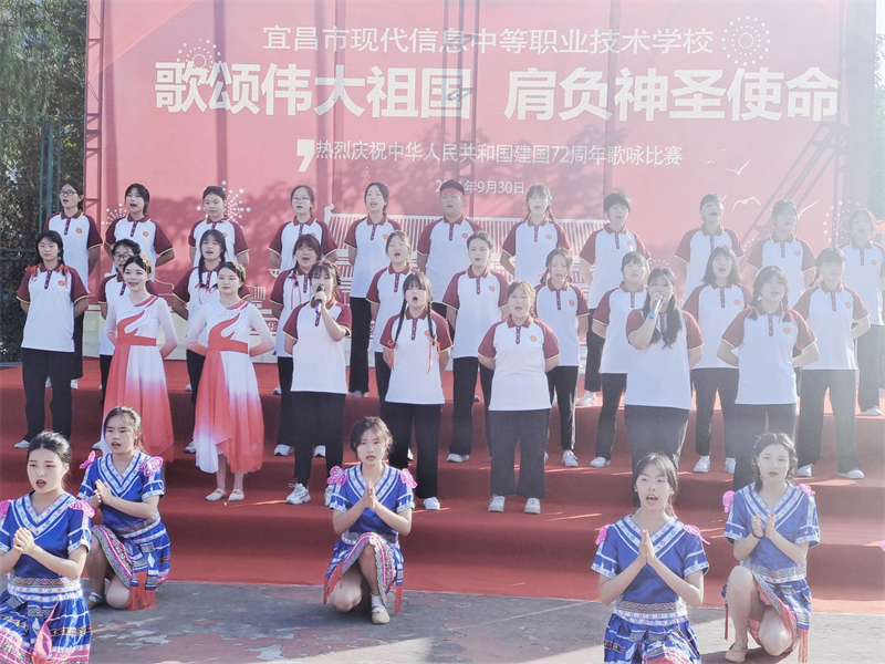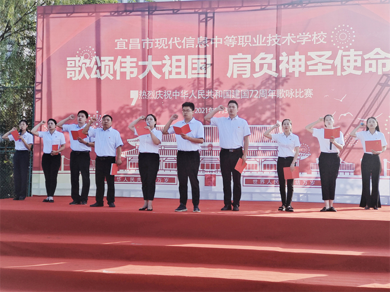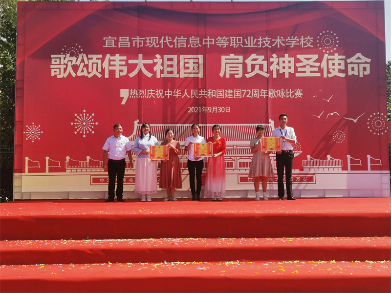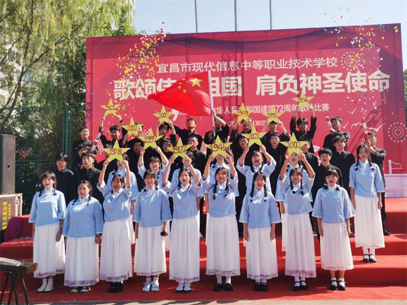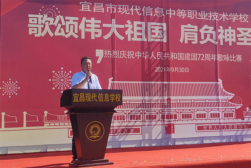 为庆祝中华人民共和国成立72周年,重温历史的脉动,感召莘莘学子肩负起青少年的使命,增强集体凝聚力,展现青春昂扬的战斗姿态,由现代信息学校团委主办的“歌颂伟大祖国、肩负神圣使命”为主题的祖国颂大合唱比赛,于9月30日上午八点在学校操场拉开帷幕。校党支部书记田水荣、校长朱宗桥、校长胡一杰、执行校长李朝晖、副校长肖飞等领导出席参加并担任本次大合唱评委。