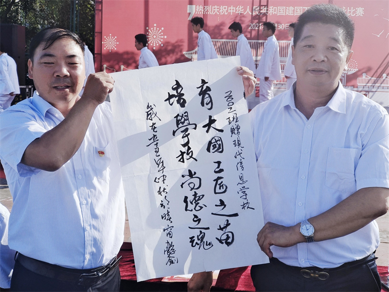 全体教师合唱《光荣与梦想》更是引得学生们掌声雷动。“前进,向前进,实现复兴的伟大梦想”所有教师在庄严的国旗下,神圣的党徽前,郑重承诺——以我血荐轩辕,以吾肩托华夏!