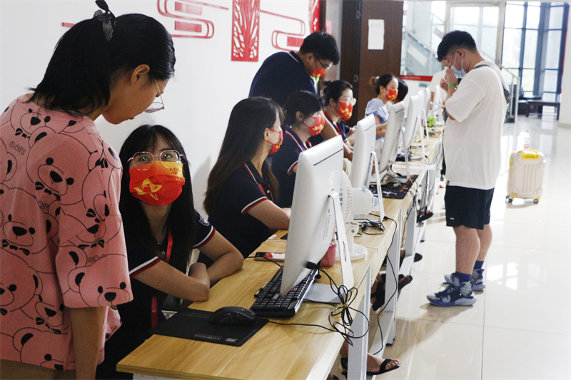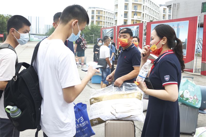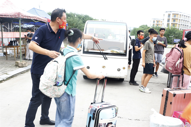 学生志愿者迎接新生入学