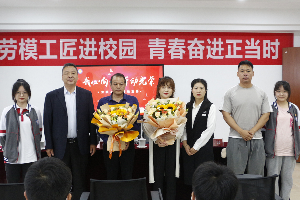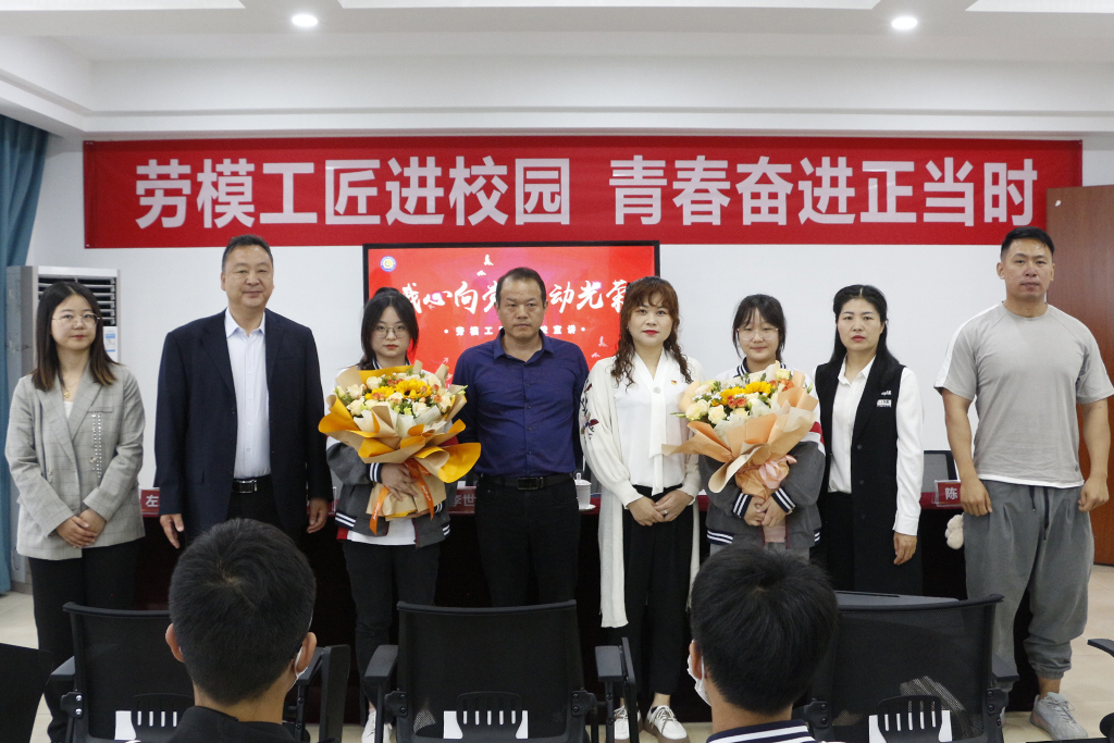 在两位劳模身上,我们感受到了“爱岗敬业、争创、勇于创新、甘于奉献”的劳模精神,被他们崇尚劳动、热爱劳动、辛勤劳动、专注劳动的精神所感染、鼓舞,我校学生代表为两位楷模献上鲜花,感谢他们带来了宝贵的精神财富,激励我们在今后的人生道路上以勤为径,奋勇争先。