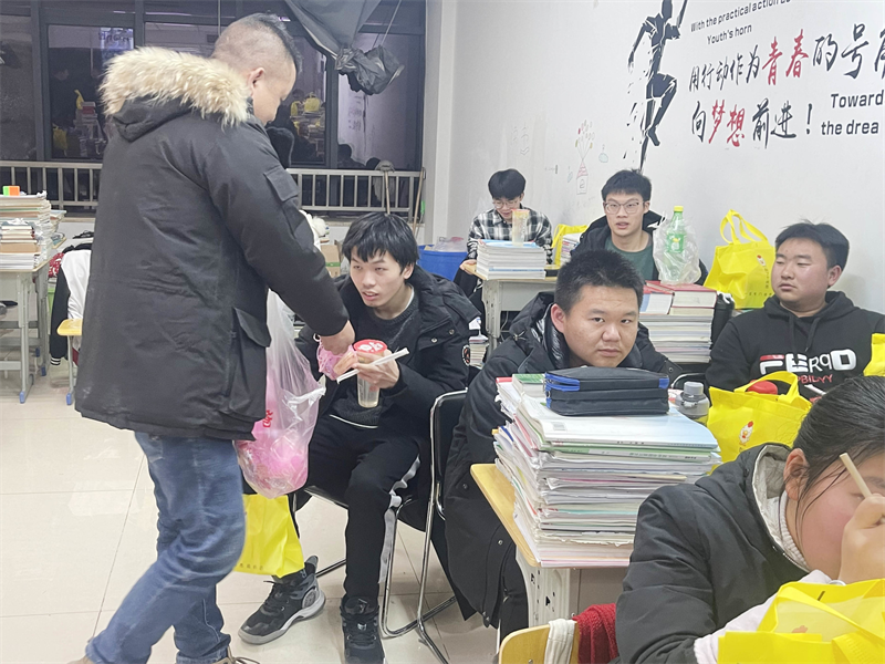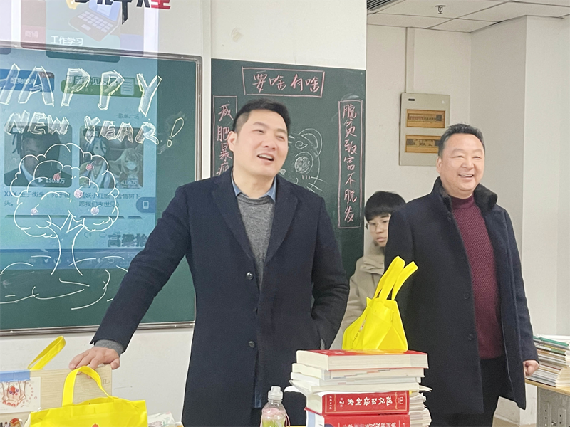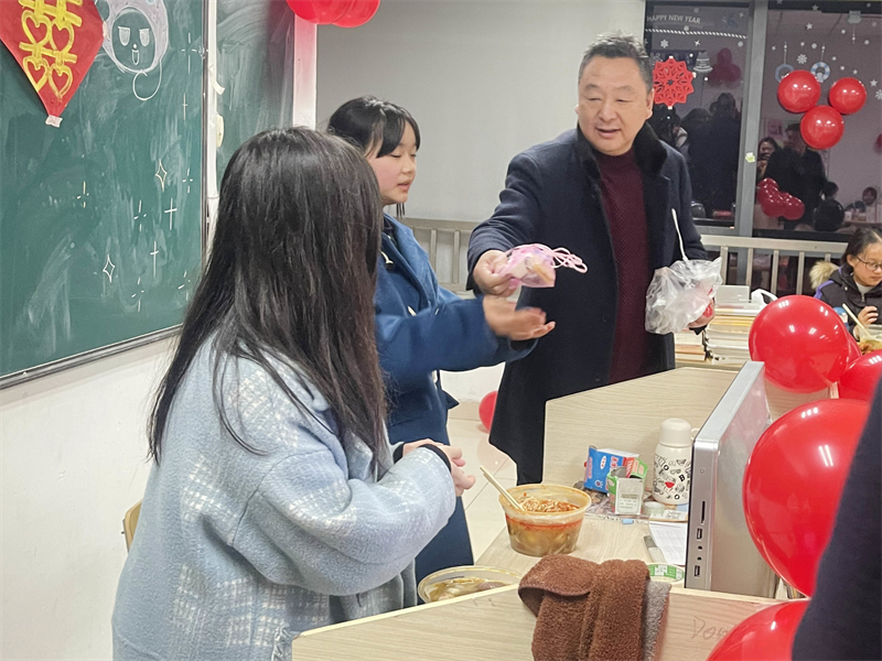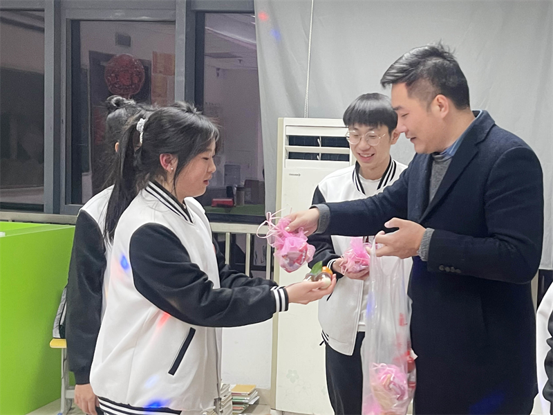 各班以班级为单位开展元旦晚会,执行校长李朝晖、副校长肖飞一行前往各班,为学生带去精美礼品,寄语殷殷,拳拳祝福,长夜寒凉不及心间融融暖意。校领导心中有爱,行中有善,真教育是心心相印的活动,从心里发出来,从而打动心灵的深处。学生们备感关爱,备受鼓舞,晚会气氛热烈,各班师生情绪高昂。