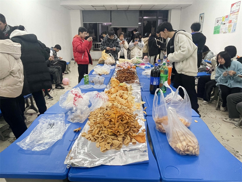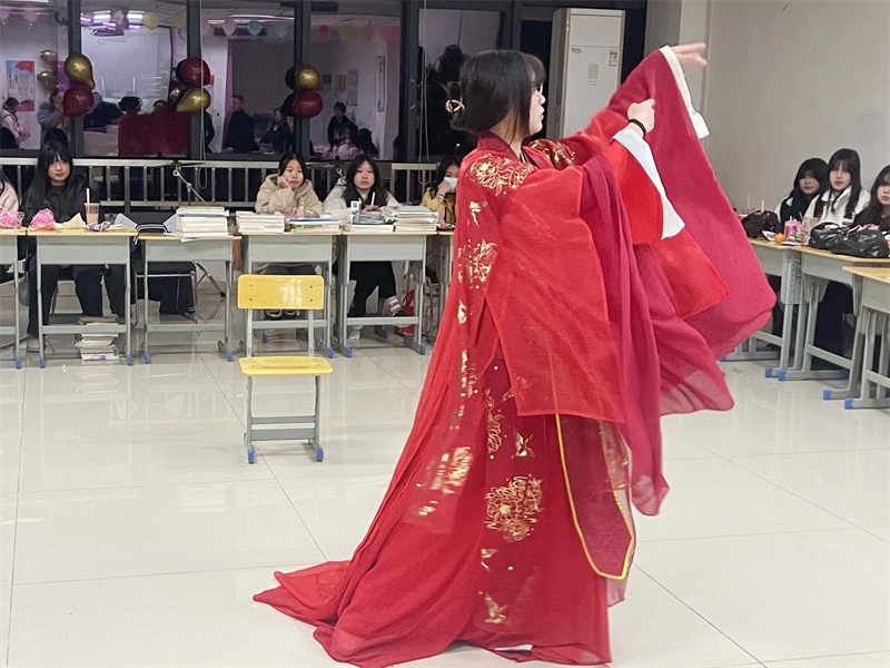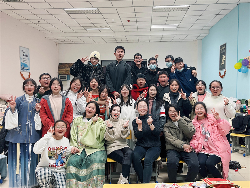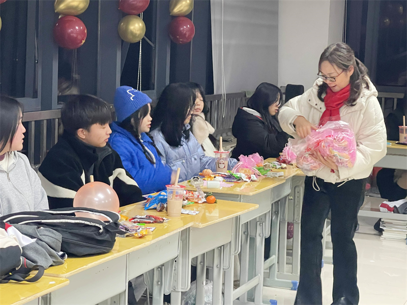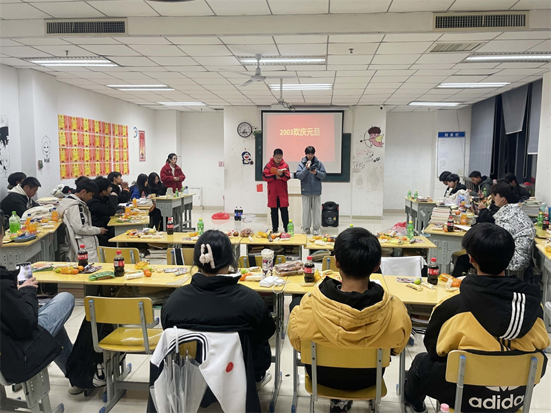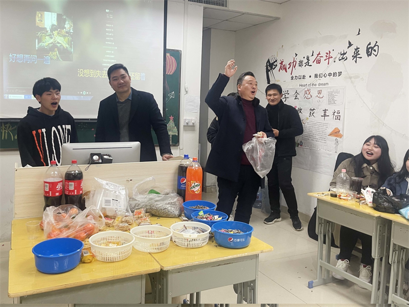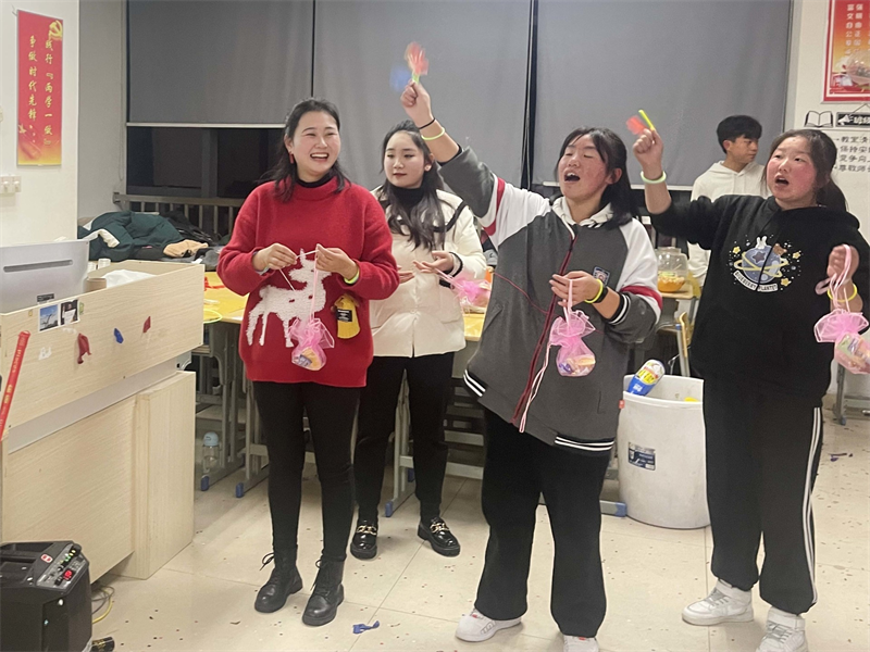 轻声曼舞庆元旦,欢声笑语迎新年。活动期间,风格迥异的主题,精彩纷呈的节目,让人眼花缭乱。有的班级以“忆童年”为主题,岁月匆匆,流年似水,郑重地向去年挥手道别,共筑来年辉煌,教室里回荡着《喜羊羊》《左手右手》,童趣满满,别有一番滋味!有的班级以展示才艺为主,二胡独奏、鼓点铿锵,余味悠长,古典舞赏心悦目,爵士舞惊艳全场,流行与古典兼收、奔放与内敛共存,形式多样,精彩绝伦,充分展示了当代青年的精神风貌。也有的班级酷爱游戏,抢凳子、你画我猜、顶气球、成语接龙、飞花令,令人捧腹大笑的小品更是引发了此起彼伏的欢笑声。历时两个小时的晚会在同学们意犹未尽的喝彩声中完美落幕。